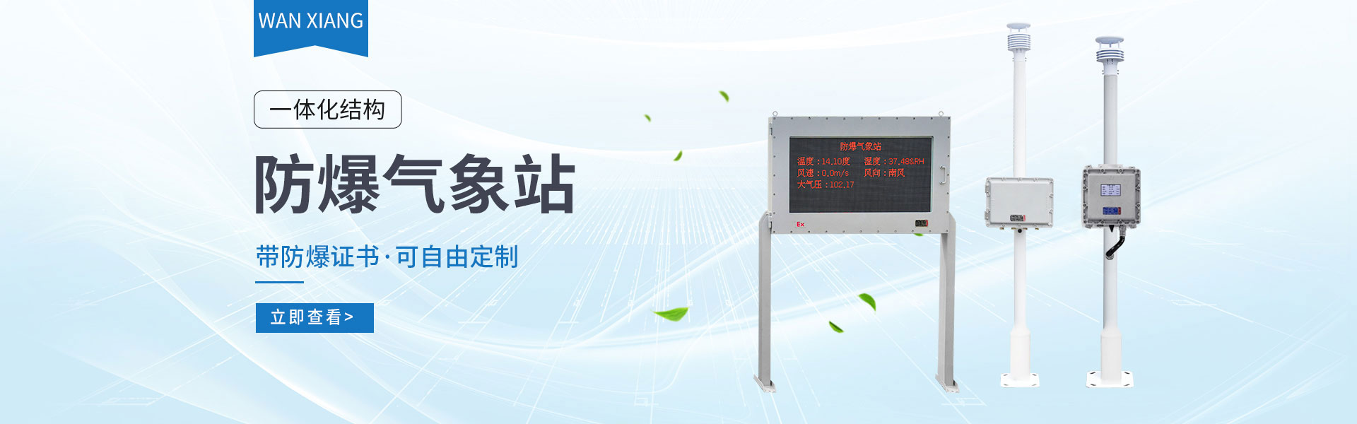 山東萬象環(huán)境科技有限公司官網(wǎng)主要產(chǎn)品有防爆氣象站,校園氣象站,農(nóng)業(yè)氣象站,負(fù)氧離子監(jiān)測站,超聲波氣象站,歡迎咨詢15666889815!